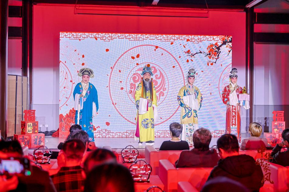 戏曲联演《柳荫记》《麻姑献寿》《太真外传》选段,将常规戏曲的华美与喜庆推向高潮,小生与旦角的精彩对唱,传递出对团圆与家国和谐的美好祝愿。